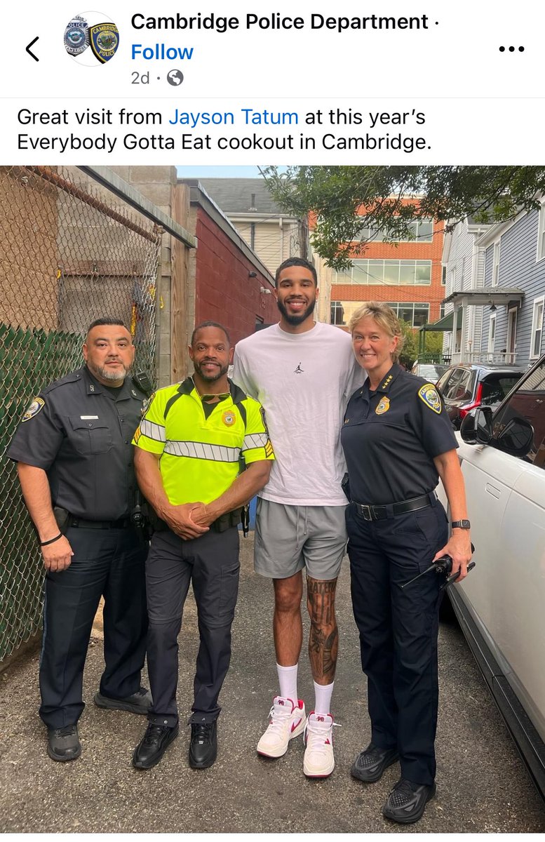 Jayson Tatum said hello to Cambridge PD at a recent community event pic.x.com/ffesxabvux – 2:05 PM