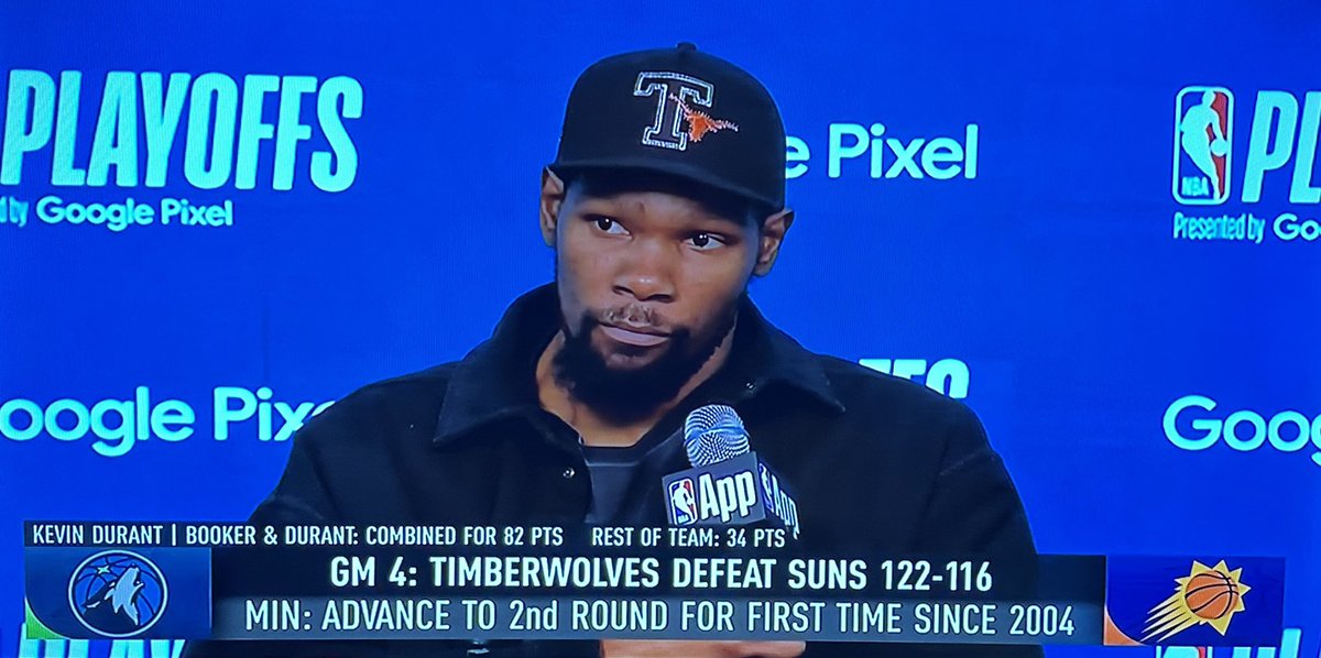 Kevin Durant on Anthony Edwards: “I’m so impressed with Ant. So impressed with Ant. My favorite player to watch. Just grown so much since he came into the league.” – 1:21 AM