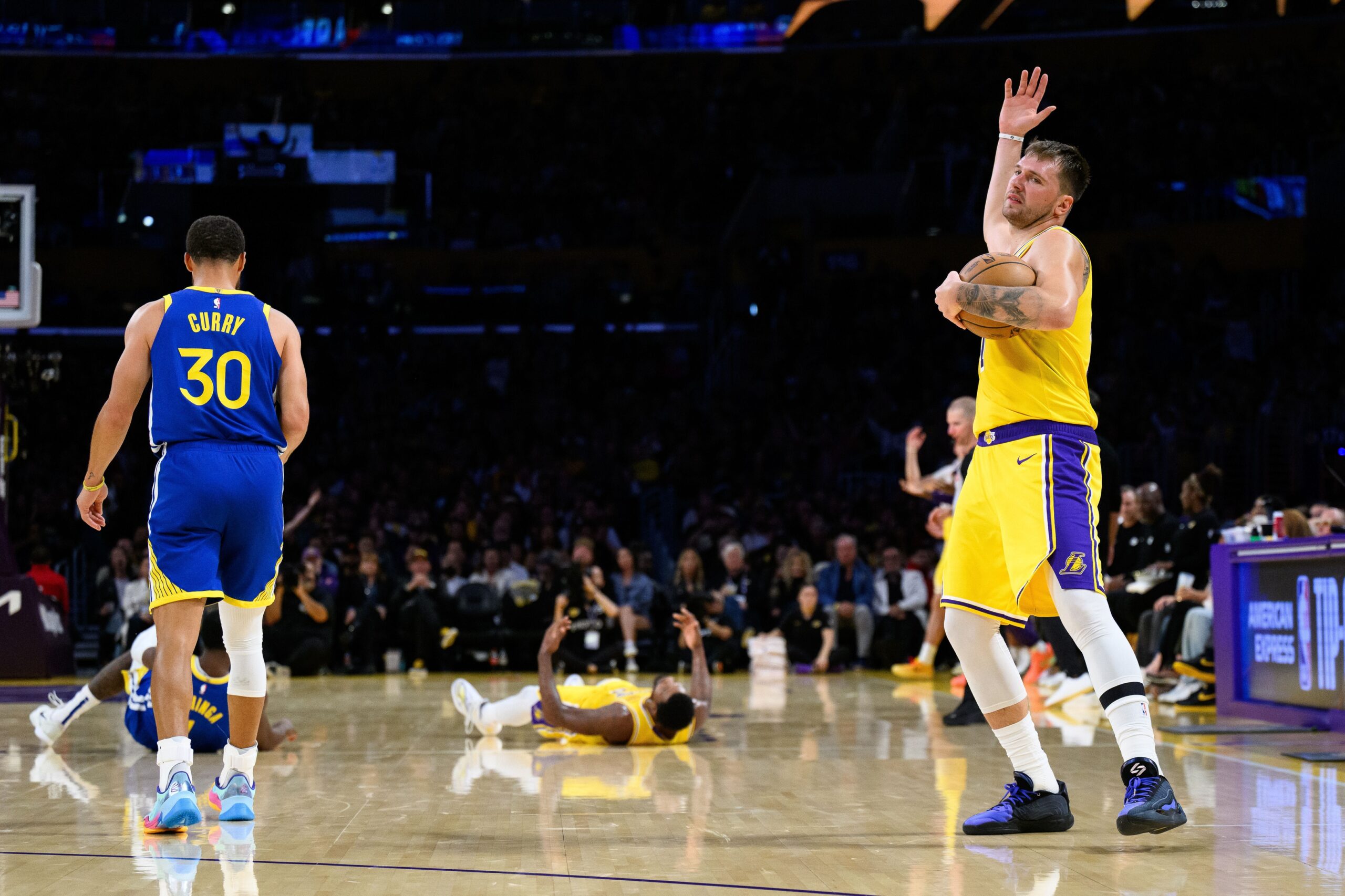 Warriors forward Jimmy Butler picked up right where he left off last season, doing plenty of damage from the free-throw line. On a related note, while Butler had 10 free-throw attempts in the first half, Lakers guards Austin Reaves (3) and Marcus Smart (4) were racking up fouls. Meanwhile, Lakers point guard Luka Doncic was in midseason form, stuffing the stat sheet and leading all scorers with 22 points. Across from Doncic was Warriors leader Stephen Curry. Despite entering his 17th NBA season, Curry had tallied 14 points and three steals in 16 minutes.