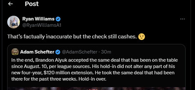 Per ESPN’s Adam Schefter, that contract from August 12 is the contract Aiyuk signed. It’s important to note, Aiyuk’s agent Ryan Williams re-posted it saying that Schefter’s report was “factually inaccurate.” This was due to it initially having “August 10” in it. Schefter later updated the post to say “August 12”. So, that may have been the inaccuracy.
