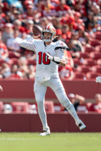 While Jones struggled in a loss to the Buccaneers last Sunday, the 49ers have gone 3-1 with him at the helm. The 27-year-old has connected on 67.3% of passes for 1,252 yards, six touchdowns, and three interceptions.